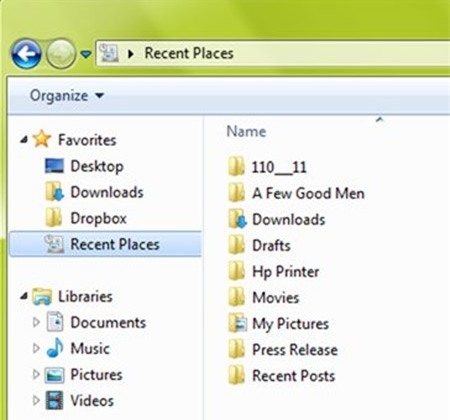 Thư mục Recent Places cho thấy mọi tệp tin và thư mục sử dụng gần đây trong máy tính Windowcủa bạn. Bằng cách này, bạn có thể biết được những kẻ lén lút đã truy nhập vào những gì trong máy tính của mình.
