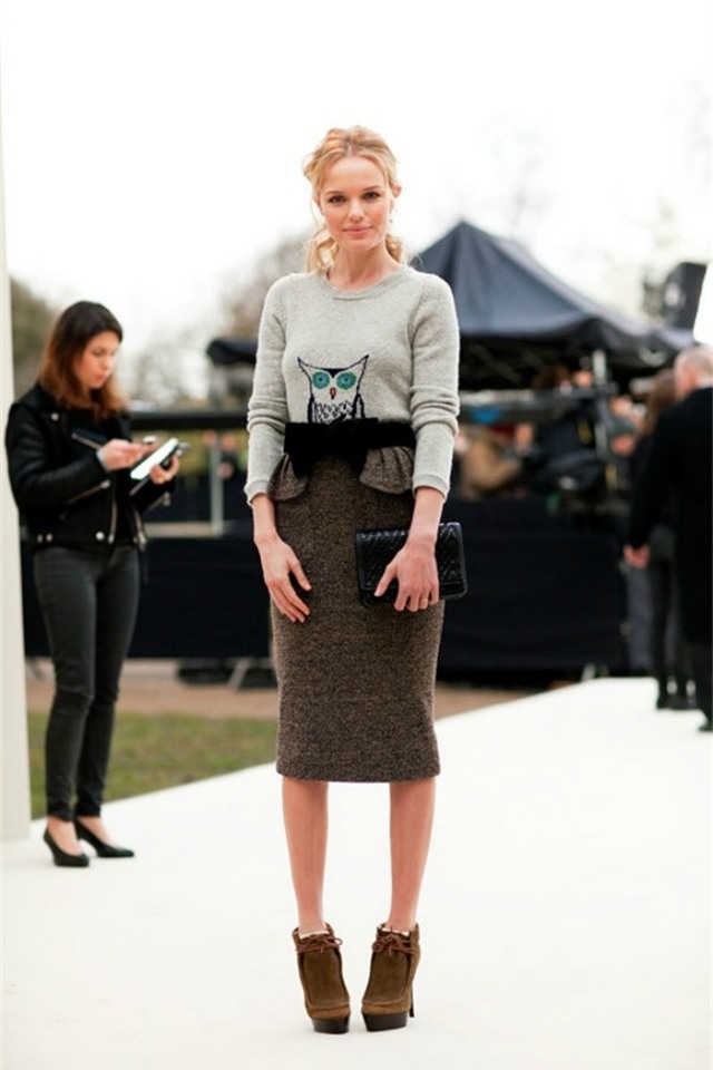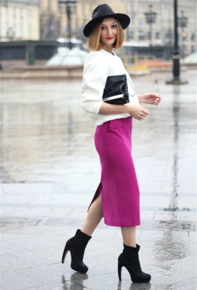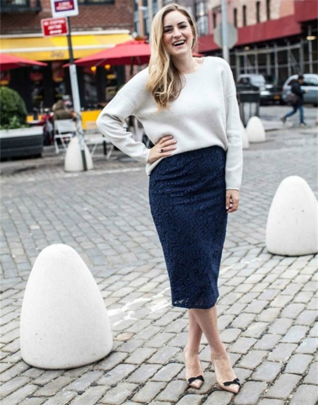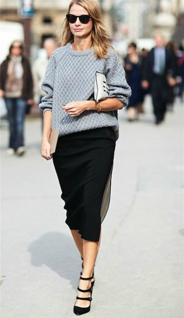 Người béo: Những người sở hữu thân hình đậm một chút nên chọn váy bút chì tối màu, độ dài chạm gối hoặc qua gối và kết hợp với áo len dáng suông hoặc oversied không quá rộng.