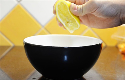 Bước 2: Cắt đôi quả chanh rồi vắt nước cho vào bát (Chú ý lọc bỏ hạt).