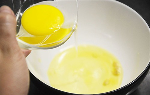 Bước 3: Đập vỡ một quả trứng vào bát khác và khéo léo lọc lấy lòng trắng cho vào bát.