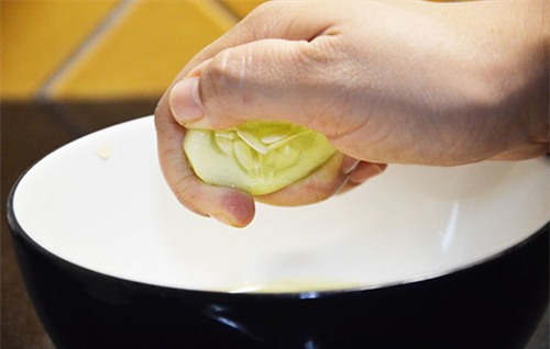 Bước 4: Bổ sung 1 thìa sữa chua vào bát và vắt lấy nước từ một miếng dưa chuột.