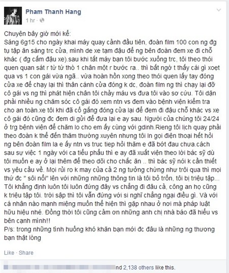 tai nạn. Thanh Hằng đã ngay lập tức lên tiếng phủ nhận tin đồn này và