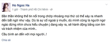hình với gia đình nạn nhân. Ngay sáng hôm sau, Hà Hồ cũng đăng một