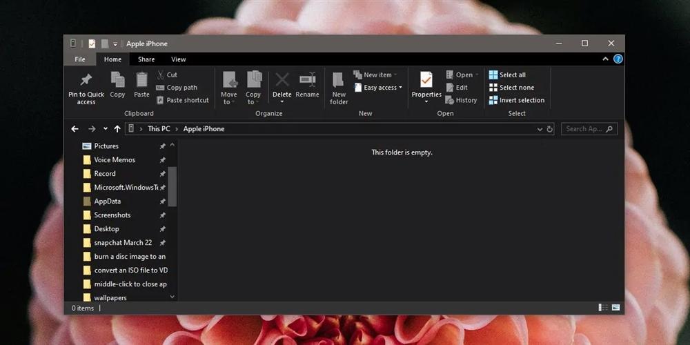 Cách iPhone làm việc với máy tính Windows 10 khác hoàn toàn với cách nó làm việc với máy tính Mac. Theo đó, bạn có thể dễ dàng kết nối thiết bị này với máy tính Windows 10 và truy cập hình ảnh và video từ thư viện ảnh Camera roll. Lúc này, Windows 10 sẽ xem iPhone như một thiết bị đa phương tiện. Tất cả các trình điều khiển (driver) cần thiết cũng sẽ do Windows 10 tự động nhận diện và cài đặt. Mặc dù vậy trong một số trường hợp, khi bạn kết nối iPhone với máy tính Windows 10, bạn sẽ không tìm thấy hình ảnh và video, thay vào đó là thông báo This folder is empty.