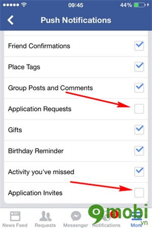 Bước 5 : Tại đây bạn bỏ tích chọn ở cả 2 mục là Application Request và Application Invites