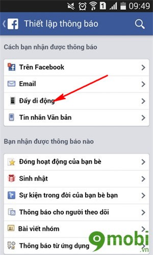 Bước 3 : Chọn tiếp vào mục Thông báo.