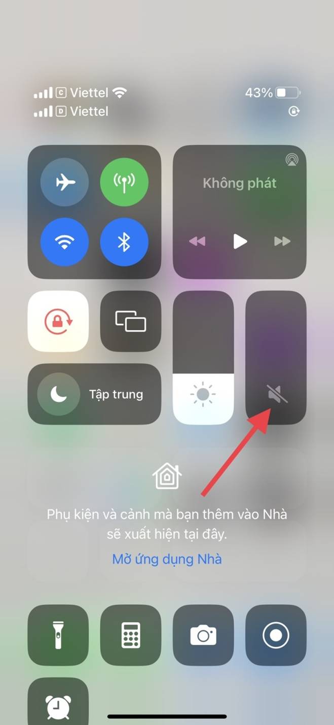 Vuốt từ cạnh dưới màn hình lên trên đối với iPhone 8 hoặc cũ hơn và từ góc phải màn hình xuống dưới đối với iPhone X hoặc mới hơn > Sau đó kéo thanh âm lượng giảm tới mức tối đa, vậy là bạn có thể bắt đầu chụp ảnh rồi đấy.