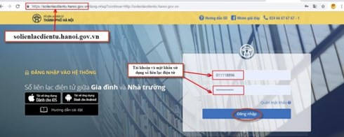 Bước 1: Truy cập vào trang sổ liên lạc điện tử (PINO), học sinh/cha mẹ học sinh truy cập vào trang https://solienlacdientu.hanoi.gov.vn (nếu dùng máy tính) hoặc phần mềm PINO (nếu dùng thiết bị di động thông minh) đăng nhập bằng tài khoản và mật khẩu được cấp;