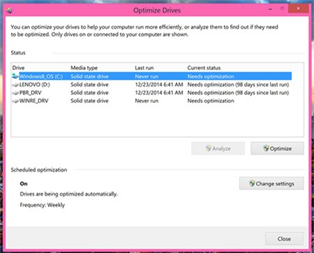 công cụ Optimize Drives. Công cụ này sẽ hiển thị cho bạn biết bạn đang