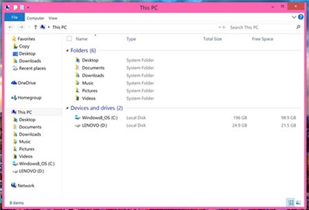 Charms bar, click vào Search và nhập từ khóa This PC. Khi This PC xuất