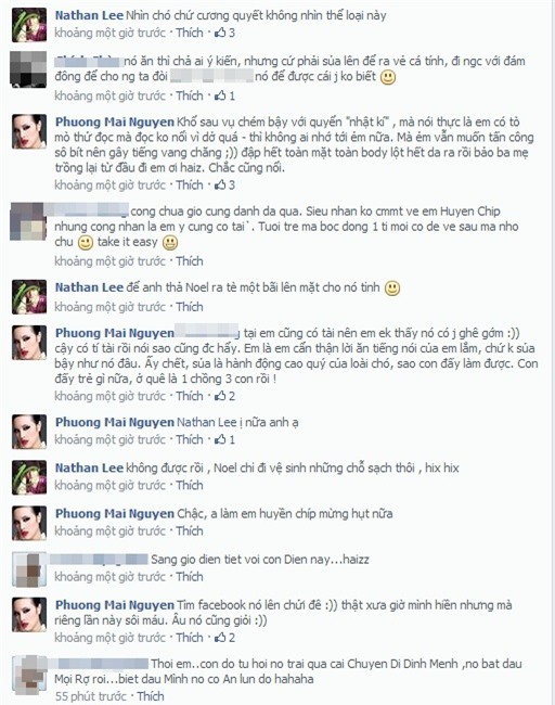 Những người từng yêu mến Phương Mai và Nathan Lee đều bất ngờ khi theo dõi câu chuyện trên trang cá nhân của nữ diễn viên. Thậm chí có người còn đưa ra ý kiến "Phương Mai đã bằng ai mà có quyền mạt sát người khác". Đa phần mọi người đều cảm thấy thất vọng trước cách ứng xử của Phương Mai và Nathan Lee sau khi cả hai bình luận về câu chuyện... chẳng liên quan đến mình với một thái độ "cửa trên" thấy rõ.