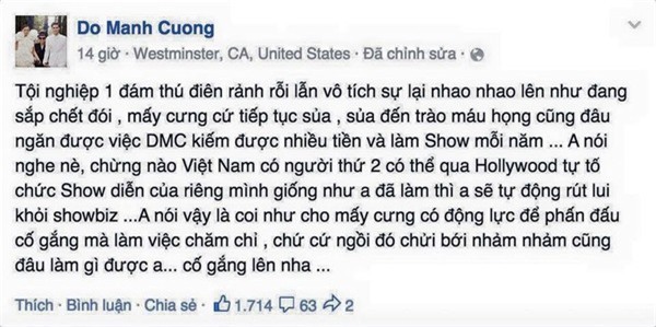 Mới đây, NTK Đỗ Mạnh Cường đã lặn lội sang tận Mỹ để làm show diễn cho riêng mình. Rất nhiều người mẫu Việt Nam cũng vượt ngàn dặm xa xôi đến chung vui với NTK nổi tiếng. Sau khi những bộ trang phục được trình diễn xuất hiện trên mặt báo, khán giả ở nhà mới "té ngửa" và đồng loạt "tố" những thiết kế mới của Đỗ Mạnh Cường đều là đạo nhái ý tưởng từ những thương hiệu lớn như Dior, Lavin... Tuy nhiên, điều đáng nói ở đây là thái độ ứng xử của Đỗ Mạnh Cường trước những ý kiến trái chiều của dư luận khiến nhiều người ngán ngẩm.