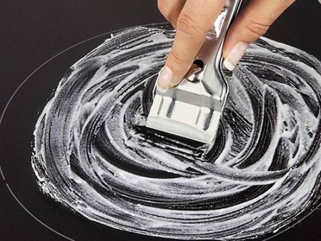 - Khi sử dụng dao vệ sinh bạn cần phải thật cẩn thận, tránh để làm trầy xước mặt kính làm mất đi tính thẩm mỹ của chiếc bếp. Nếu vô tình làm trầy xước bạn có thể lấy baking soda pha với nước với tỉ lệ 3:1, thoa lên vết xước và vùng xung quanh. Để đó khoảng 10 phút, rồi lấy khăn mềm lau theo vòng tròn nhỏ đến khi vết xước biến mất hoặc mờ đi.
