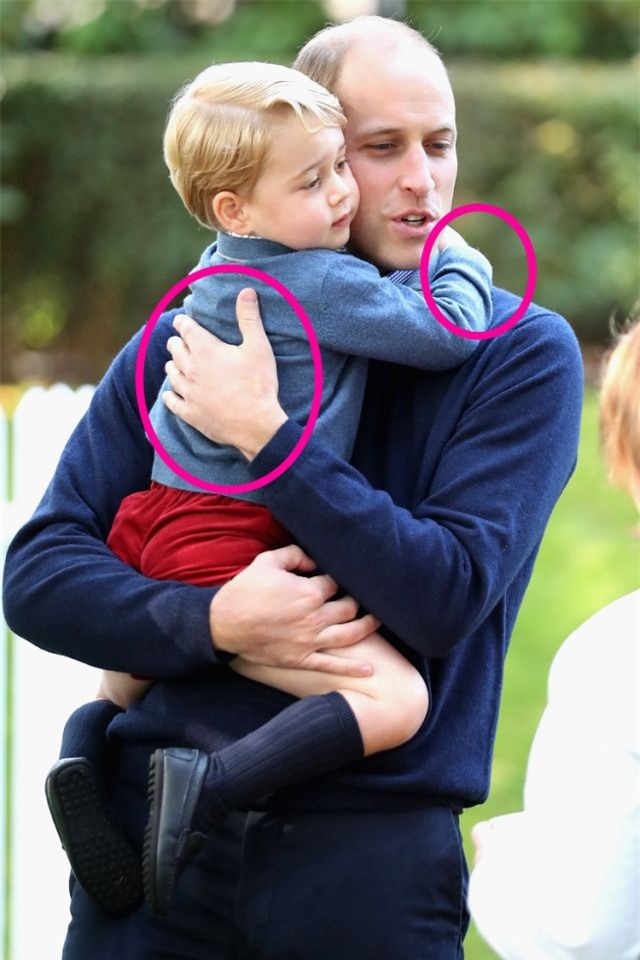 Hoàng tử William thể hiện mình là ông bố tốt nhất, luôn bên cạnh con bằng cách bế và ngả người về phía sau để ôm chặt con trai hơn. Với cách bế áp sát của bố, Hoàng tử George sẽ cảm nhận được sự an toàn từ chính người bố của mình. Chuyên gia Wood đánh giá: "Hành động vòng tay xuống thấp tạo thành tư thế chỗ ngồi chắc chắn cho Hoàng tử George và như một mỏ neo đã giúp cậu bé cảm thấy vững chắc và nhận được sự hỗ trợ tối đa nhất".