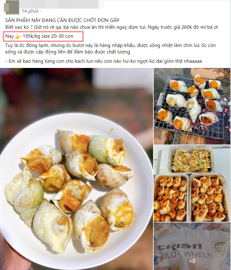 Nhiều địa chỉ bán online cho biết ốc bulot Pháp, Ireland hay Canada đang được bán với giá rẻ là do sản lượng nhiều, người dân các nước đó ít tiêu thụ. Hàng đông lạnh chất lượng còn khoảng 95% hoặc 50-60% so với hàng tươi sống.