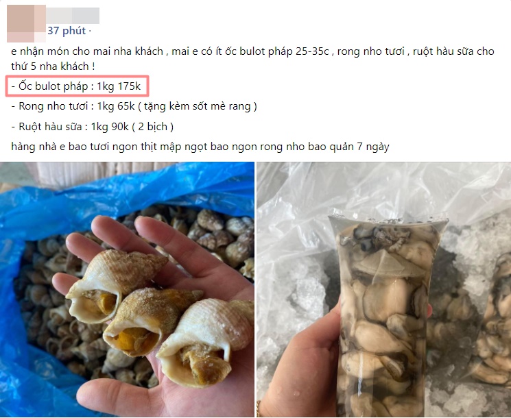 Ốc bulot (còn gọi là ốc hương ngoại) được nhiều người bán giới thiệu “nhập khẩu từ Pháp, Ireland, Canada” có thịt giòn và ngon giống ốc hương Việt Nam.