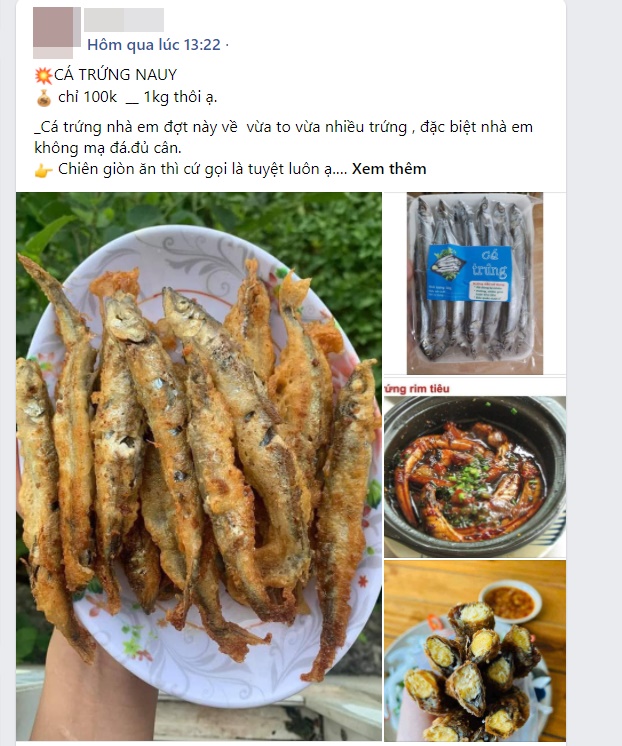 Cá trứng Nauy giá chỉ 100k/kg. Ảnh chụp màn hình.