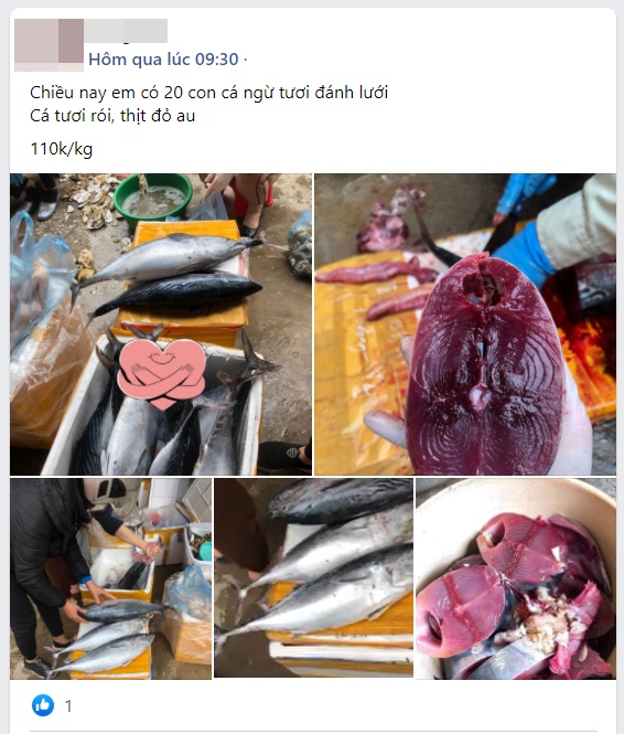 Cá ngừ tươi giá chỉ 110k/kg. Ảnh chụp màn hình.