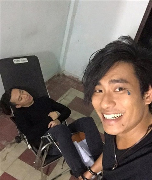 Bạn diễn Kiều Minh Tuấn cũng tranh thủ ghi lại hình ảnh Trấn Thành ngủ gục khi đang quay phim Nắng