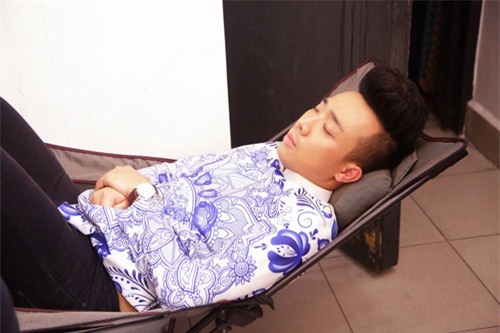 Thậm chí Trấn Thành còn tranh thủ chợp mắt trước khi ghi hình.