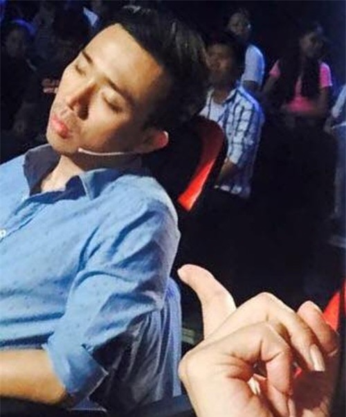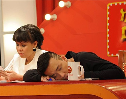 Khi ghi hình cho Thách thức danh hài cùng với Việt Hương, Trấn Thành cũng thường xuyên ngủ gục trong hậu trường.