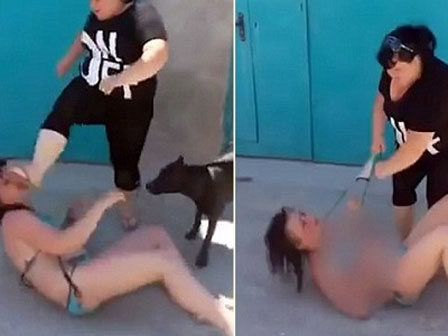 Các bà vợ lao vào đánh tới tấp một cô gái mặc bikini, buộc tội cô "ngủ với chồng họ" rồi túm tóc kéo đi trên phố.
