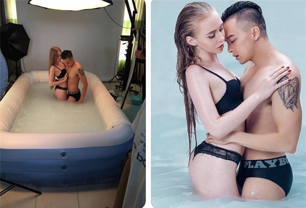 Khả năng photoshop vi diệu đã hô biến "cặp đôi" từ bể tắm hơi sang biển khơi xanh biếc.