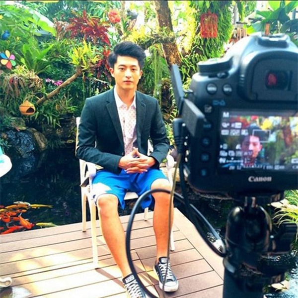 Vest và quần đùi chẳng liên quan nhưng đảm bảo Harry Lu lên hình vẫn rất bảnh bao.