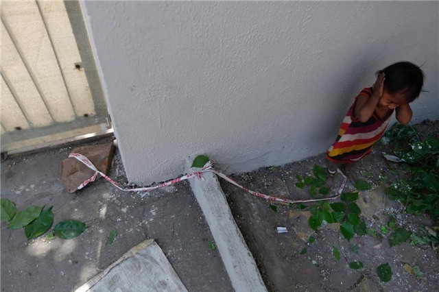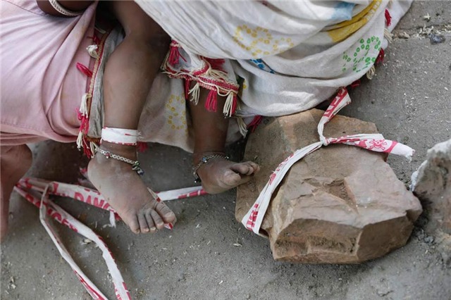 "Tôi phải buộc con bé lại, để nó không chạy ra đường. Con trai đầu của tôi mới 3 tuổi rưỡi nên nó không thể trông con bé" Kalara (23 tuổi) nói với Reuters.