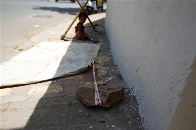 Đi chân đất và khuôn mặt phủ đầy bụi, cô bé Shivani (15 tháng tuổi) phải ở ngoài trời 8 tiếng một ngày trong cái nóng lên tới 40 độ C tại thành phố Ahmedabad.