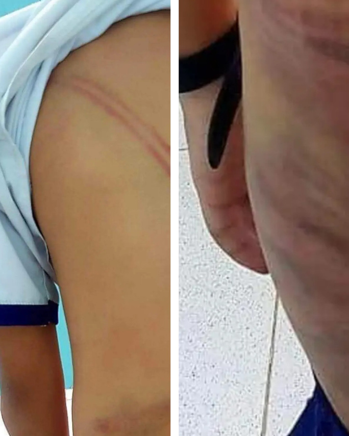 Bé T. bị Nghi dùng nhánh tre đánh làm bầm tím cơ thể