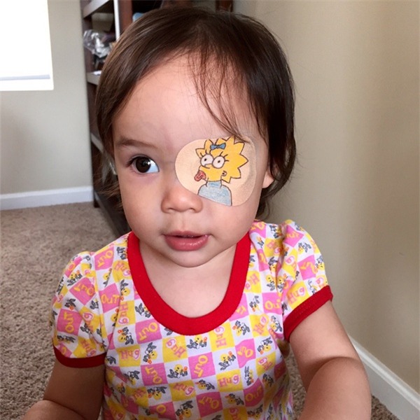 Để giúp con gái yêu mắc chứng bệnh đục thủy tinh thể cảm thấy thoải mái và thích thú mỗi khi đeo băng bịt mắt, người cha Geoff Grubb đã kỳ công dành thời gian biến tấu những hình thù ngộ nghĩnh lên tấm băng bịt mắt của con.