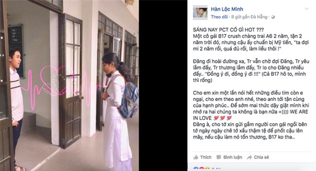 2 nhân vật trong màn tỏ tình siêu đáng yêu là Đăng và Tr. Câu chuyện này đã được chính bạn cùng lớp của Tr có tên Facebook là Hàn Lộc Minh kể lại. Nguyên văn là: