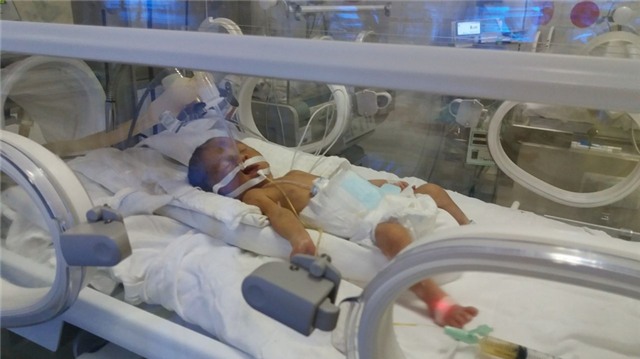 Cháu Trần Gấu - Con của thiếu úy Đậu Thị Huyền Trâm được chăm sóc hơn 50 ngày tại Trung tâm Chăm sóc BV Phụ sản Trun ương |