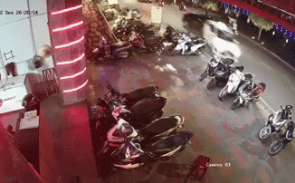 Góc camera khác vụ ô tô đâm hàng loạt xe máy, ô tô bên đường