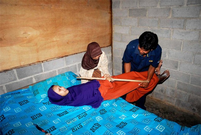 Trong suốt 10 năm bị bệnh, cô phải chống gậy mới có thể đi lại được. Vì không thể vặn hay cúi người, cuộc sống của cô hoàn toàn phụ thuộc vào sự chăm sóc của người bà 90 tuổi, Suginem.