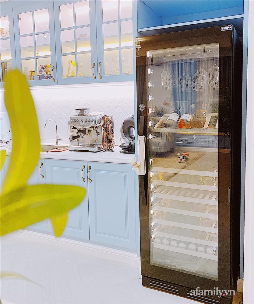 Yêu thích gam màu xanh yên bình, chị Thúy Hằng chọn cho góc bếp nhà mình màu xanh làm điểm nhấn.
