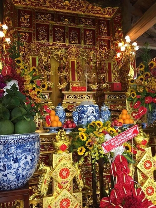 Ngôi nhà thờ Tổ vừa được khánh đúng dịp giỗ Tổ nghề sân khấu nên ban thờ được trang hoàng rất lộng lẫy.
