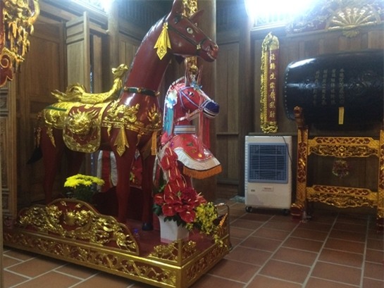 Đôi ngựa chầu, trống chầu đều được trạm gỗ, sơn son thếp vàng.