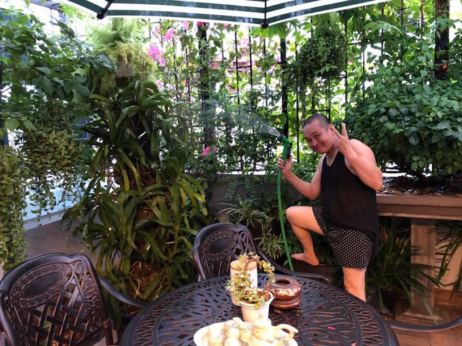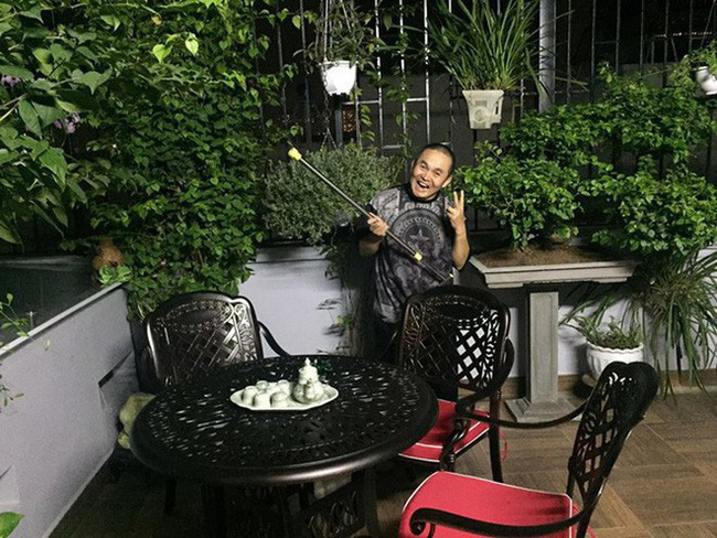 Xuân Hinh chụp ảnh bên một góc nhà của mình. Vợ chồng Xuân Hinh có hai con – con gái lớn đang theo học ngành truyền thông bên Mỹ, con trai út học lớp 12. Xuân Hinh khoe cậu con trai học giỏi Văn, Sử.