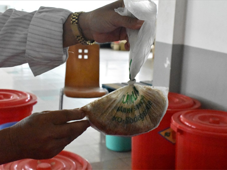 Hồ ngâm ớt với muối, bên trong chứa nhiều xác côn trùng.