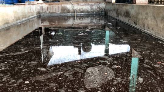 Theo ghi nhận của phóng viên, tại đây, chủ cơ sở đã xây dựng một hồ chứa bằng bê tông bên trong pha nước và muối. Dung dịch này có màu đen và có nhiều bọt trắng.