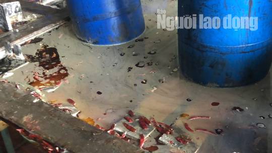 Bước đầu, lực lượng chức năng ghi nhận vệ sinh hồ nén ớt không đạt tiêu chuẩn. Khu vực xung quanh hồ bẩn, sủi bọt và có nhiều xác côn trùng. Thùng phi đển nén ớt cáu bẩn, không được vệ sinh định kỳ.