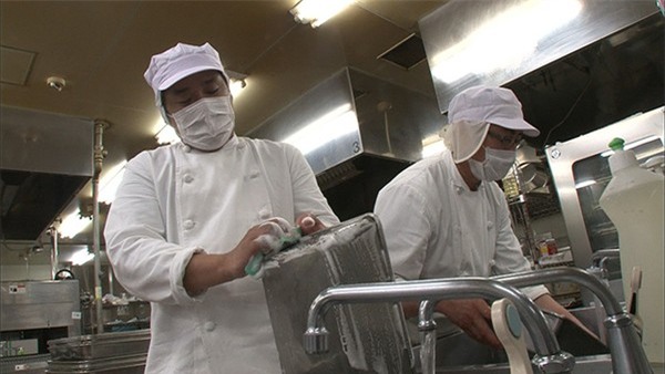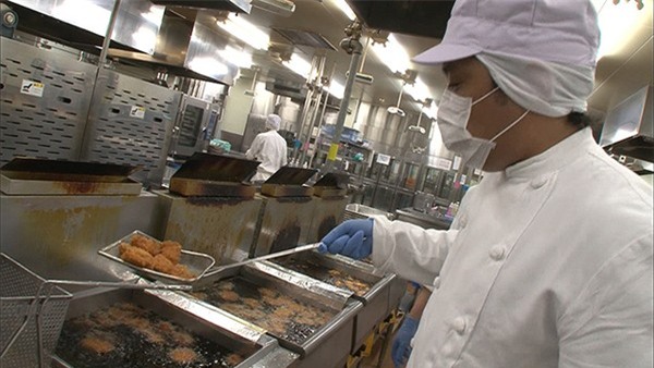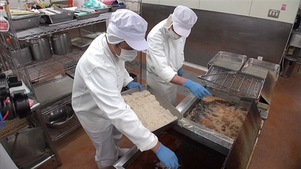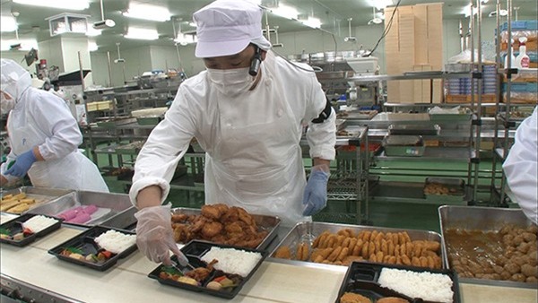 Công việc tại các nhà máy làm cơm hộp thường bắt đầu vào lúc 10 giờ đêm. Việc đầu tiên người ta phải làm khi đến nhà máy đó là thay quần áo và rửa tay bằng xà phòng.