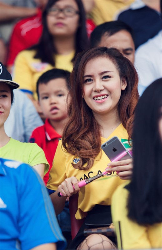 Cùng với hai hot girl Huyền Anh và Vy Timy, ở khắp khán đài khu vực CĐV SLNA, người ta cũng bắt gặp những gương mặt đầy xinh xắn và cổ vũ hết mình cho đội tuyển SLNA. Với sự xuất hiện của khán giả cuồng nhiệt yêu bóng đá cùng những bóng hồng xinh đẹp trên khán đài đã khiến cho không khí trận bóng đá chiều qua càng sôi nổi hơn.