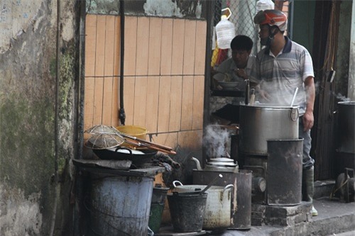 Ngoài ra, dụng cụ nấu nướng cũng nhem nhuốc, mất vệ sinh nghiêm trọng. Ảnh chụp trên phố Mai Dịch - Cầu Giấy - Hà Nội. |