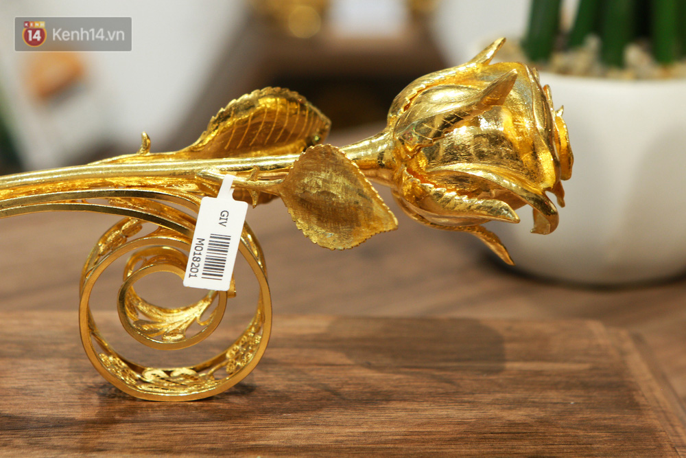 Trao đổi với chúng tôi, ông Hoàng Minh Huy, đại diện cửa hàng cho biết, sản phẩm đã được một người Hải Phòng đặt mua từ giữa tháng 2. "Bông hồng có chiều dài cả cuống và nụ là 22 cm, phần đế được thiết kế với giá đỡ bằng bạc, mạ vàng 24K. Đặc biệt, sản phẩm có đầy đủ chứng thư kiểm định vàng ghi rõ đầy đủ thông số về trọng lượng, kích thước, chất lượng vàng… của đơn vị kiểm định độc lập", ông Huy thông tin (Ảnh: Karalux)