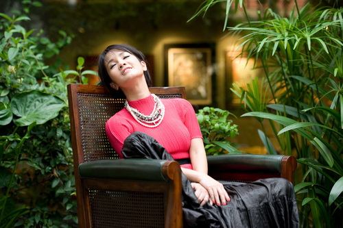 Màu gỗ nâu trầm mặc hoài cổ, màu xanh non của lá cây. Sự hiền hòa của nước, cái trong lành của gió... đó là những gì có thể cảm nhận được trong không gian sống của Hồng Nhung.