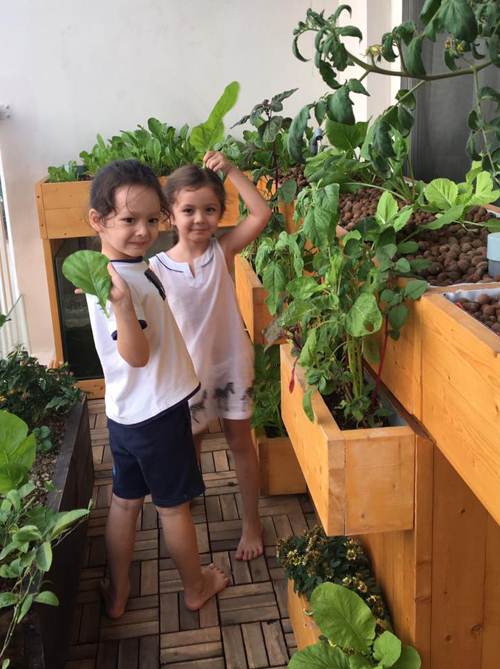 Không chỉ thế, gần đây cô còn đầu tư thêm cho hai con một hệ thống trồng rau, nuôi cá khép kín kết hợp với hình thức thổ canh đã thực hiện trước đây.