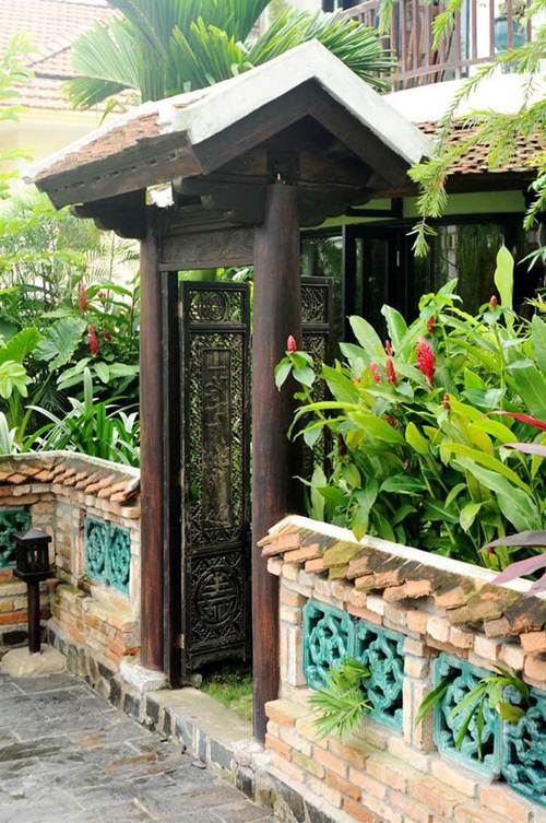 Cổng vào với mái ngói được Hồng Nhung tận tay mua từ ngoài bắc chuyển vào Sài Gòn.